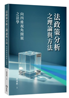 因此,本書提出「向四維視角開展的法政策分析方法」,運用現象學的還原,將一切法律問題還原為三項要素:對象、時間和語言,再加上個人之自我認知與覺醒,便能構成具有四維向度的法政策分析成果,分析傳統法學所常見的理性偏見與社會偏見。
