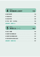 以數字、時間、家庭、身分、飲食、用具……等,將單字分別羅列,相同類別一次學習,幫助加深記憶。簡單又實用的相關會話,可模擬實際狀況加以學習與運用,還可以搭配相同分類單字替換練習。
