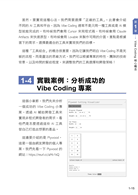 這本書的核心精神為:把繁瑣的程式碼細節交給 AI 夥伴,讓你專注於真正有價值的創新工作。不管你是想實現腦中想法的創業者、想提升效率的開發者,還是想直接參與原型開發的產品經理,這本書都能成為你探索 AI 時代軟體開發的最佳指南。現在就開始,讓我們一起享受 Vibe Coding 帶來的創作樂趣吧!