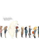 一波三折後,熊在地鐵上遇見了一個好心的小女孩帶他回家,小女孩幫熊洗澡、給他飯吃,還陪他一起念書,最後還幫熊找到回家的方法……在這整個過程中,似乎只有小女孩看到了熊,連小女孩的媽媽也是一路滑手機,甚至不知道女兒帶了一隻熊回家呢!媽媽的反應,代表的也是大部分人類的反應。而,看見熊的困境的小女孩,也就是少數對保護環境議題有所覺醒的人吧!