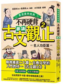 這套《不再死背,趣讀古文觀止》,編者精選《古文觀止》精華文章。本系列分別為<春秋戰國篇>、<名人功臣篇>及<妙筆生花篇>共三本。每本收錄二十篇文章,先白話後文言及注釋,並穿插大量生動又幽默的漫畫輔佐閱讀。讓讀者從白話故事起手,建立對故事的熟悉之後,就能試著挑戰文言文囉!