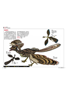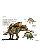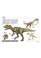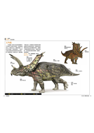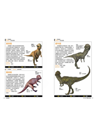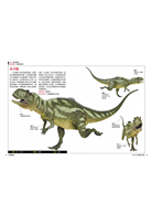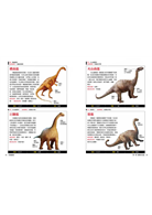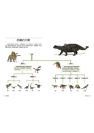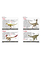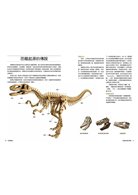 每種恐龍都標示中文學名、拉丁文意、生存年代、身體構造與部位圖解、化石分布與命名者、體長體重與食性、科學研究補充(如羽毛證據、群居行為、狩獵推測)。