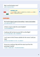 全書分為六個部分,分別是「海外旅遊的行前規劃與準備」、「飛往目的地」、「入住飯店」、「到處遊覽」、「用餐與購物」以及「處理突發狀況」。前三個部分以step by step 的方式呈現,從行前準備開始,涵蓋辦理登機報到手續、飛行過程及抵達目的地的機場英語,以及入住和退房手續的飯店英語。後三個部分則聚焦於各種旅遊情境,收錄了不同的交通方式、問路、參觀景點、拍照、用餐、購物,以及處理突發狀況時的必備英語,幫助讀者從容應對旅途中的各種情況。
