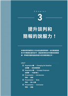 掌握溝通重點後,「英文表達方式訓練」單元教你將想法套用簡單句型說出。可搭配音檔練習發音,提升在會議中帶領與表達的自信。