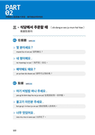 進入到PART02後,便隨即利用在PART00和PART01所學過的發音、單字和句子的結構,擴大學習,觸及日常生活中常見的場景,包含「初次見面時」、「打電話時」、「餐廳點餐時」、「交通」共4大主題,搭配上作者親自錄製的標準韓語音檔,邊聽邊跟著模仿,開口就說出最標準的韓語。