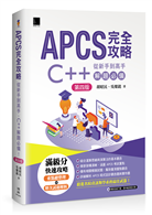 同時也可以參考附錄的內容來幫助自己熟悉 APCS 的測試環境。此外,為了讓學習者以較簡易的環境撰寫程式,本書所有程式以 Dev C++ 的 IDE 進行程式的編輯、編譯與執行。希望透過本書的課程安排與訓練,可以讓學習者培養出以 C++ 語言應試 APCS 的實戰能力。