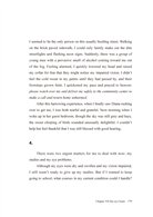 This selfless man by some twist of misfortune had met a selfish woman. I felt that I couldn't just pack up my bags and run back home this time, causing my parents to suffer the anxiety and bitter sorrow of my imminent death. I just wanted to carry on with my life as usual and do some of the things I had never tried before in the limited time I had left. If I could just live for once as I had wished, all that I had experienced in this world wouldn't be in vain.