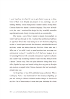 The next morning, I rushed home right after Chinese class to start writing a paper that I had already planned out. Under the direction of Professor Munro, I had opted for a course on the comparison of Chinese and English literature. My chosen topic was an investigative study of utopian satire through a comparative analysis of Lao She's Cat Country and George Orwell's Animal Farm.