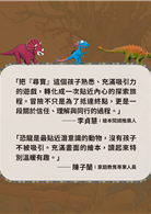 「恐龍是最貼近潛意識的動物,沒有孩子不被吸引。充滿畫面的繪本,讀起來特別溫暖有趣。」