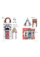 「詞彙」篇依時代順序,帶你認識從中世紀到現代的建築元素:如諾曼式的圓拱與犬牙紋、哥德式的尖頂拱與扇形拱頂、文藝復興的三角楣與簷口……每個部件都有手繪插圖對照,過目難忘。