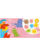 透過恐龍影子搭配其腳印的圖像線索,讓孩子在觀察、對照和比較、推理之間進行數學思考,提升圖像辨識與邏輯推理能力。以問題「少了哪一個甜甜圈?(觀察比較)這是誰的腳印?(邏輯推理、配對)」,再對照該頁的恐龍影子和腳印外型,引導幼兒建立「對照和比較、推論」的邏輯關係。