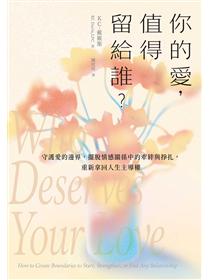 「在關係裡反覆受傷的人,常把一切歸咎於自己。但生命中的傷不該由你獨自承擔,即使帶著缺陷與不完美,你依然值得安全、穩定和被珍愛。這本書幫助你劃清責任界線,停止過度付出,重新拿回選擇,搞清楚誰真正值得你去愛。」──蔡佳璇/臨床心理師、哇賽心理學執行長