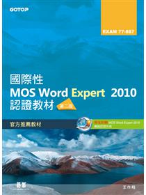 1.同時擁有MOS Word 2010 Core及Expert國際認證、文書處理與教學的三合一書籍,書上操作畫面豐富、標示清楚,並以教學的先後順序編排與呈現,易教易學,輕鬆上手!