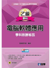 本書依據勞動部勞動力發展署技能檢定中心最新公布之「電腦軟體應用(乙級)題庫學科試題」編寫而成,對105/01/01起報檢者適用。提供完整詳實的試題解析,並另外附贈學科測驗卷。使此書兼具複習與考試之功用,幫助學生愉快地通過檢定取得證照。