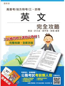 《英文完全攻略》重點整理穿插試題演練,書末收錄近三年高普考、鐵路員級、司法四等英文考科試題,透過大量題目的演練,快速熟悉考試命題趨勢、檢測學習成果,了解自己哪些部分需要補強,提昇應考實力!