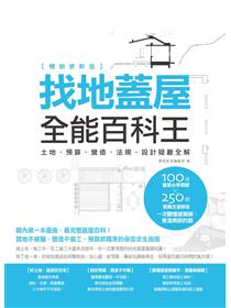 本書收錄在購地、買地、造屋的流程中,需要瞭解的100件事,提供最詳盡的知識和介紹,教你瞭解常見的住宅結構重點、蓋屋相關法令、如何買地、如何做預算配置、監工選料、設計外觀與內部,同時製作流程計畫表,讓你一看就懂。看完這本你將充分掌握造屋流程及成敗關鍵!