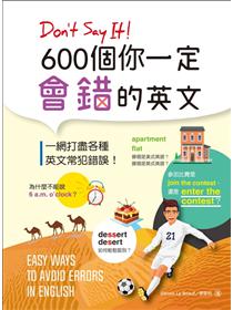 列出近六百個最容易搞錯的英文字彙,每一組採正誤例句對照,並做完整清晰的說明解釋,加上實用例句,幫助釐清細微的文法錯誤。