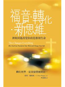 彼得.魏格納在數十年的事奉生涯中經歷了多次思維模式改變,讓他看見聖靈新的運行,在世界各地扭轉頹勢,抵擋惡者。現在他邀請你也敞開心房,接受聖靈改變思維模式的大能。本書完整敘述靈恩運動的興起及其在普世宣教上所帶來的影響,同時強調聖靈可以如何幫助基督徒在商業界、政治界、教育界和娛樂界發揮影響力,帶來社會的轉化,迎接神國的來臨。要了解如何領受基督在天上之豐滿,本書是一本重要指南。