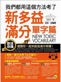 準備新多益考試時,首要條件是「慎選優質工具書」。《我們都用這個方法考了新多益滿分-單字篇》收錄新多益高頻單字,讓讀者可以勤背單字並透過隨書附贈的MP3練習聽力辨別發音。此外,利用主要單字延伸學習其同義字、常考片語、慣用語和文法等等。考新多益高分或滿分或許是件難事,但只要選對教材,就能事半功倍。