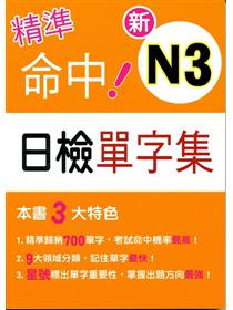 《精準命中!N3日檢單字集》並參考出題基準,精準預測出題方向。此外,有別於世面上一般的日檢單字書,本書是以領域來分類單字,分為「生活」、「學校」、「性格」、「文化」、「自然科學」、「商業經濟」、「副詞」、「片假名」、「其他」,9類單字,相信此種分類能讓讀者體察單字的關連性,絕對有助於記憶。此外,本書將我們預測極有可能出現的單字用星號標出來,讓讀者在背誦時能多加留意。