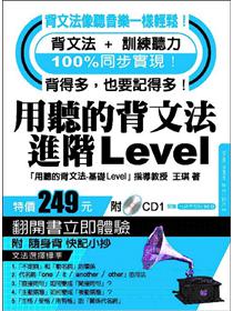 《用聽的背文法進階Level》收錄英檢中級、高中程度的常用文法,並延續《用聽的背文法基礎Level》著重於聽力學習的方法。CD收錄「文法解說」、「應用公式」以及「例句練習」。打破背文法一定要看書的傳統,保證〔背文法+訓練聽力〕同步實現。學習不再受限於時間或地點,即使開車、搭捷運、做家事也能輕鬆學習文法。☆本書只含CD1,另售《用聽的背文法進階Level(光碟完整版9CD)》