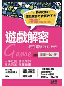 1.作者車庫一姊以自己在遊戲業的三千天經歷,將《遊戲解密》寫成台灣電玩界第一本「職場攻略聖經」。