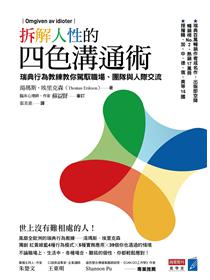 《拆解人性的四色溝通術》是行為科學家湯瑪斯.埃里克森創造、融會DISA分析工具與實際案例,將人格分成紅、黃、藍、綠四色,剖析這四種人格對事情的解析方式與個性偏好,像是紅色人格重視領導與控制,黃色人格著重人際關係,綠色人格愛好和平與穩定,藍色人格追求細節與實事求是等,將原本需要靠著在職場上多年碰撞才能有的「識人學」,變成淺顯易懂又好玩的人格分析。