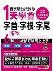 曾成功幫助數十萬基測及其他領域考生輕鬆學好單字、順利通過考試的呂宗昕教授,在《單字密碼》的暢銷奇蹟之後,再次為考生及英語學習者精心編寫《呂宗昕教授教你1天學會字首‧字根‧字尾》,更深入淺出的字首‧字根‧字尾秘訣,更多元豐富的學習內容,就是要你輕鬆學好單字。