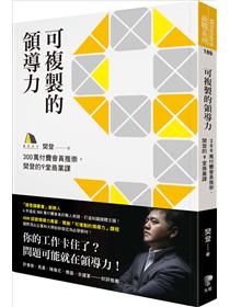《可複製的領導力》一書顛覆了ㄧ般人對領導力高高在上、不可捉摸的認知,讓每個人都可以輕鬆掌握領導力的法門。──余建軍(喜馬拉雅 FM創辦人)