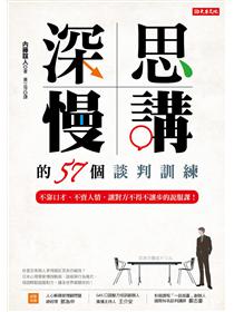 但你或許會擔心真正臨陣時,仍然會說得七零八落?放心!本書作者除了教你「深思看懂對方心裡、慢慢講無遺漏」外,還根據談判、提案、人際往來等場合,歸納出57個談判實境訓練,再佐以學術數據和實驗詳盡解說,幫你在談判前做好萬全準備!