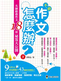 本書分為上下兩冊。本冊為實戰篇,從孩子實際搖筆為文,最常碰見的困難出發:不會寫人物怎麼辦?不會寫風景怎麼辦?不會寫想像怎麼辦?……九個大哉問,每個都是學生在學習寫作的過程中,必然走過的困境;也是師長批改作文時,最常遇到、卻難以改善的文章弊病。