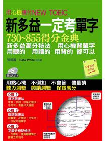 「用心機應付NEW TOEIC ------新多益一定考單字(730~855得分金典)」是為了有效率地提升NEW TOEIC應試者的英語單字理解力、運用力以及英語的綜合能力編輯而成。全部的字彙都附有例句一起學習,有很高的加分效果。至於例句的選擇方向是根據NEW TOEIC的宗旨和個人程度及狀況的不同來分類,都是具有實用性及機能性的句子。