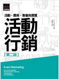 這本最新、最即時的《活動行銷》第二版提供一套完整的工具、策略以及最佳實務經驗,為小型會議與展覽或者大型會展與慶典等各種活動規劃每個步驟,以打造出一個成功及完整的行銷計畫。