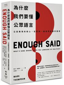 「馬克.湯普森精闢的分析了我們被過度簡化的公共語言。本書揭露了當今真相崩解、充斥著『仇恨、憤怒及謊言』的社會,令人驚喜,振奮人心。」