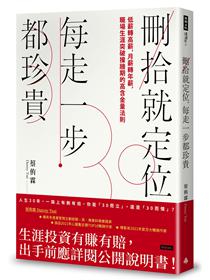 過去的我是工作狂,失衡於工作,但是到了某個時刻,我忽然發現人生在「刪」「拾」之間,才能獲得舒適自在的踏實感。現在,我不再當工作狂,而是嚮往努力工作所獲得的相對報酬。不但要擁有主要收入,也要求自己斜槓,讓才華變現。善用金錢,理性投資理財,在自己退休前儘可能地有目標去拚搏,走向生活自在、財富自由之路。