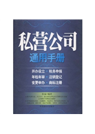 訂購本商品前請務必詳閱退換貨原則。在《私營公司通用手冊》編寫過程中,我們參考了大量的相關法律法規,並請有關法律及工商稅務人士把關,力求通俗易懂,條款分明,最大限度地突出實用性、參考性和易用性的特點,旨在幫助踏入商海的創業者在事業運作及開創階段,能以最快的速度掌握相關知識和方法,做到心中有數,有的放矢,避免某些無心之過,減少可能遭受的經濟損失,少走彎路,以良好的企業形像打開市場之門,使事業有一個順暢的起點和良性的發展之路。