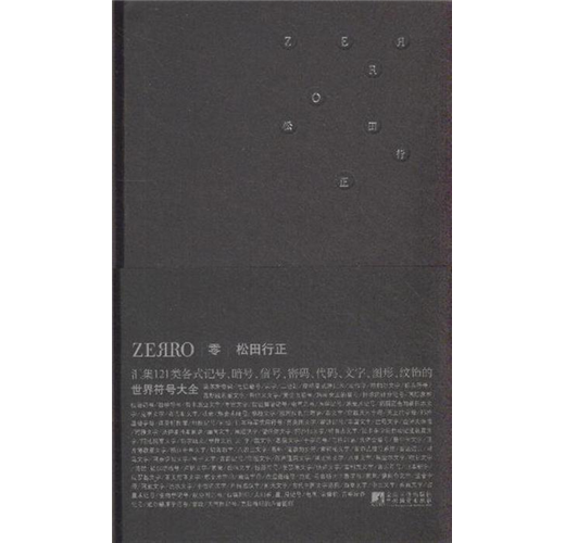 這是一本黑色的書,連三個切口都刷了黑漆。正面不著一字的書衣也是黑色特種紙,兩邊是兩張切割出來的臉部曲線,封面上只有九個小孔。這九個小孔是凡爾納的小說《桑道夫伯爵》中桑道夫伯爵解讀暗號的模型紙,配合硬封上的文字陣列,正常包裹時顯示出“ZEЯRO松田行正”,將書衣順時鐘旋轉90度就變成“ZARRATHUS”,再轉90度會出現“TRRASIGNE”,再轉90度則會出現“ASINTOERR”。這36個字母去掉作者名,就變成ZEЯRO, ZARRATHUSTRRA, SIGNE, A SIN TO ERR。九個小孔的排列方式來自杜尚的《新娘,甚至被光棍們剝光了衣服=通稱大玻璃》中的“九個射擊的痕跡”,喜歡玩雙關語的杜尚用射擊的洞比喻射精。作者解說書名的含義是:從零(ZERO)出發,逐漸偏離(ERROR),進入記號的世界。更詳細的解說,你們看書吧。書衣的背面是一株枝繁葉茂的文字樹。書中列出的記號群只是根據形狀的趣味性來選擇,也有很多記號是已經超越了溝通途徑的複雜形狀。有很多文字系統因為形狀和文法太過複雜而無法流通,自然消失,也有一些像神代文字那般怪異的文字系統。除了感到形狀有趣外,再加上被這些瞬息萬變的文字、記號所迷惑,最後本書集結了11章×11種=121個文字群、記號群。另外值得一提的是,每一頁的大小也是11的倍數,寬121毫米×長209毫米,正文的版面篇幅也是以11毫米為單位。各章的內容並非完全有系統的分類,主要以形狀相似,還有漸漸演變而成的組合來編排。各章開頭的記號是象徵每一章的變形字母。那麼就請讀者進入這個奇妙的昆蟲圖鑒般的形狀世界吧。