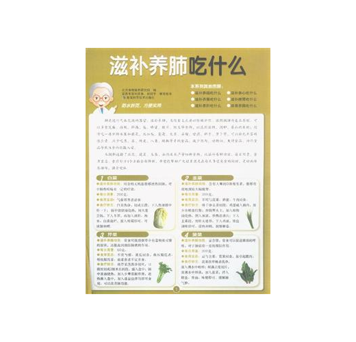 肺是進行氣體交換的器官。滋補養肺,在飲食上主要以防燥護陰、滋陰潤肺為基本原則。可以多食芝麻、核桃、鮮藕、梨、蜂蜜、銀耳、綠豆等食物,以達到滋陰、潤肺、養血的目的;經常吃一些新鮮水果和蔬菜,比如梨、葡萄、大棗、石榴、甘蔗、柿子、蘿蔔等,可以補充豐富的維生素。應少吃蔥、薑、桂皮、八角、辣椒等辛辣食品,減少肥肉、動物油、熏烤食品、油炸食品等熱性食物的攝入量。