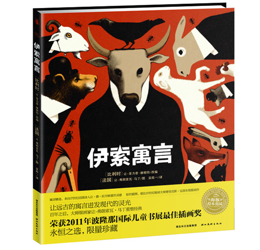 本冊繪本選擇了《伊索寓言》中的狼和小羊,狗、公雞和狐狸,獅子與報恩的老鼠,龜兔賽跑等26個故事,內容含量豐富。而本冊繪本最大特色則是讓-弗朗索瓦·馬丁的精湛的木刻插畫,全書26幅圖畫,堪稱藝術史上的精品;另外,保留了原畫紋理的印刷技術也特色鮮明。