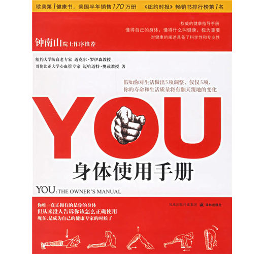 《YOU:身體使用手冊》這本書將改變你先前對於人體工作模式和老化過程的認識。它會帶你進行一次了解你身體中所有的“道路”系統的旅行,包括你身體裡的“高速路”、“歸程路”以及“路識標記”。在做了這個有關身體知識的瀏覽之後,你將會對有關血液循環系統、食物消化系統等等各種系統及各項器官的所有認識有全面的提升。
