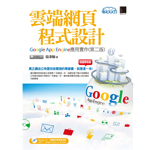 本書主要介紹如何利用Google App Engine for Java(GAE/J)實作出雲端網頁系統,並使用Eclipse與Google外掛功能進行開發,除了詳細說明如何在GAE中使用JEE的Servlet與JSP外,亦介紹Google Web Toolkit(GWT)的使用,利用GWT能夠不需要太多的HTML、CSS、Javascript與AJAX等知識,以Java語言即能夠開發出具水準的網頁系統,可降低網頁程式設計的學習難度。對於使用視覺方式設計(GWT Designer)版面與元件、如何整合目前的Google與Facebook社群帳號的方法,亦有詳細的說明與介紹。