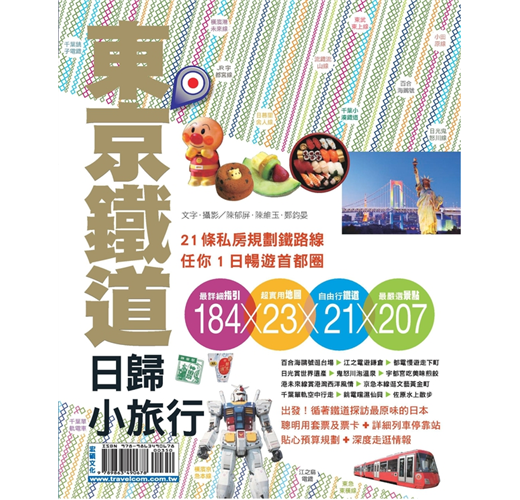 東京鐵道日歸小旅行帶讀者從東京鐵道玩起,再以東京都為中心往關東地方向外擴散,包括神奈川縣、千葉縣、埼玉縣、栃木縣及茨城縣,帶讀者見識與東京截然不同風貌的城市。鐵道在東京首都圈甚至關東來說,是方便又快速的移動方式,我們從認識鐵道交通網開始,用什麼樣的票券搭車最便利,到買票、進站、找月台、怎麼看時刻表、搭對車及轉車、如何看懂站內鐵道資訊、問路到乘車注意事項通通告訴你。