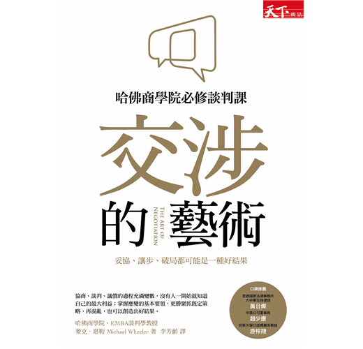 相關經典中最著名的一本經典應該是《哈佛談判術》(Getting to Yes),該書提倡的交涉談判原則如「把人和問題分開」、「著眼利益而非立場」、「掌握最佳備案」等說理清晰、深入人心,後來出版的交涉談判著作鮮少能超越其概念架...