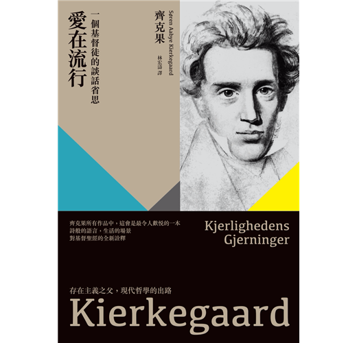 「神就是愛。住在愛裡面的,就是住在神裡面。」(《約翰一書》4:16)「神愛世人,甚至將祂的獨生子賜給他們,叫一切信祂的,不至滅亡,反得永生。」(《約翰福音》3:16)那為寫下如此湛深句子的使徒約翰(若望),終其一生,主要以「愛」作為其宣道的主題。他循循善誘,反覆叮嚀地說:「你們彼此相愛,如同主怎樣愛你們,你們也要怎樣相愛。你們若有彼此相愛的心,眾人因此就認出你們是主的門徒了。」(《約翰福音》13:34-35)在旁的人偶爾有點厭煩地說:「難道你再沒有別的主題可以講嗎?」對此,他只是微笑地回答:「還有什麼比這個更重要!」的確,作為信仰基督的門徒而言,還有什麼訊息比「愛」更為核心!如果神的本質就是愛,那作為神子女的我豈不是應以愛作為生活的起點、途徑與終點!齊克果就是本著這樣的一份體認而書寫了他的名著《愛在流行》(#Kjerlighedens Gjerninger#)。