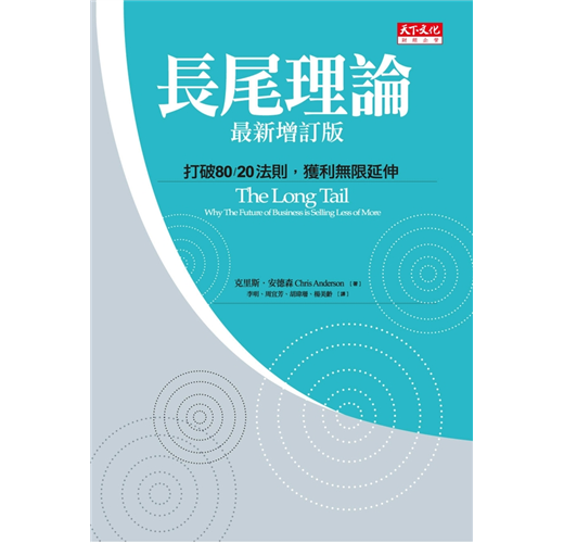 企業界向來奉80/20法則為鐵律,認為80%的業績來自20%的產品;企業看重的是曲線左端的少數暢銷商品,曲線右端的多數商品,則被認為不具銷售力。但本書指出,網際網路的崛起已打破這項鐵律,99% 的產品都有機會銷售,「長尾」商品將鹹魚翻身。
