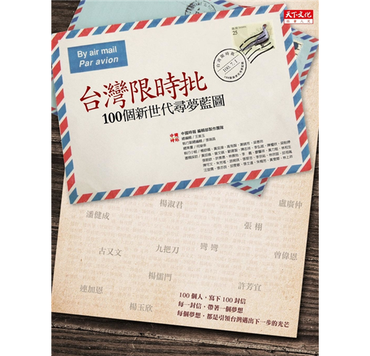 這本書,是中國時報及一百位新世代寫給台灣的限時批;也是今年新總統誕生後,第一封寄往總統府的新世代願景限時批。