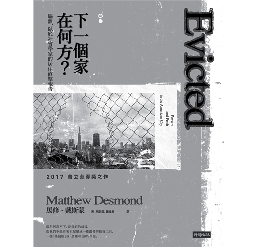 二○一七年四月十二日,美國知名的頂尖新聞獎項—普立茲獎,將非虛構類的書籍大獎,頒給了一本年輕社會學者的傑出著作,《下一個家在何方?驅離,臥底社會學家的居住直擊報告》(EVICTED: Poverty and Profit in the American City, 2016,直譯為《驅離:美國城市裡的貧窮與財富》),作者馬修.戴斯蒙(Matthew Desmond)在二○○八年到二○○九年撰寫博士論文期間,深入採訪密爾瓦基市的貧民區,主要是一個拖車公園與出租社區,故事主軸環繞著...
