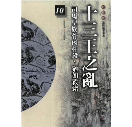 這場姓司馬的窩裡鬥,史稱「八王之亂」,只因八位王爺的傳記,恰巧都擠在<<晉書>>的一卷之中──<列傳>第二十九卷。現在,我們把它改為「十三王之亂」。一則:<<通鑑>>上,總共有十三個親王露過面,「十三」比「八」更接近史實。二則:「十三」是基督教的不祥數字,而任何形式的窩裡鬥,都是不祥。「十三王」,更是不祥,有太多的人喪生,和太多的人流離失所,最後連國都亡。