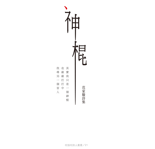 我們是那(文字的)神棍,在敲敲打打中(導盲式的鍵盤摸索聲),尋找另一個盲人(先天上的共識),而在一路跌撞中始終沒有懷疑過自己走在詩的路上,並深深體悟了,在詩的眼睛裡(盲人的鼻祖?),你可以是個神棍,也可以是個盲人,除此之外,你甚麼都不是。