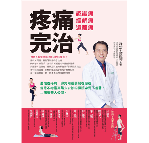最近他又完成一本新書,很榮幸能在此推薦許兄的大作《疼痛完治──認識痛、緩解痛、遠離痛》,此書就像他本人一樣,理路清晰的把日常生活常困擾我們的疼痛問題做總整理,並提出解決方案。很高興我的好友兼工作夥伴,能寫出對大眾有幫助的書籍,在拜讀之後深感獲益良多,希望能推薦給其他的讀者,這絕對是一本實用且值得珍藏的好書!